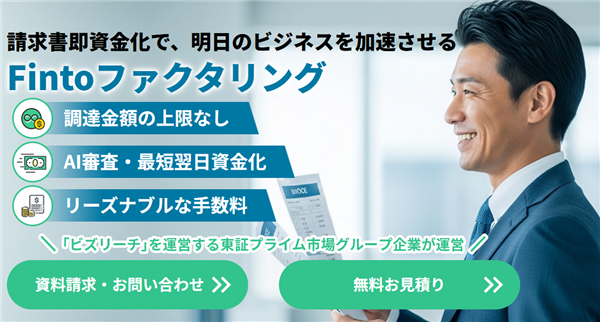 | Fintoファクタリング | 非公開 | 最短即日 | 法人・個人事業主 | 要問合せ | ◯ |